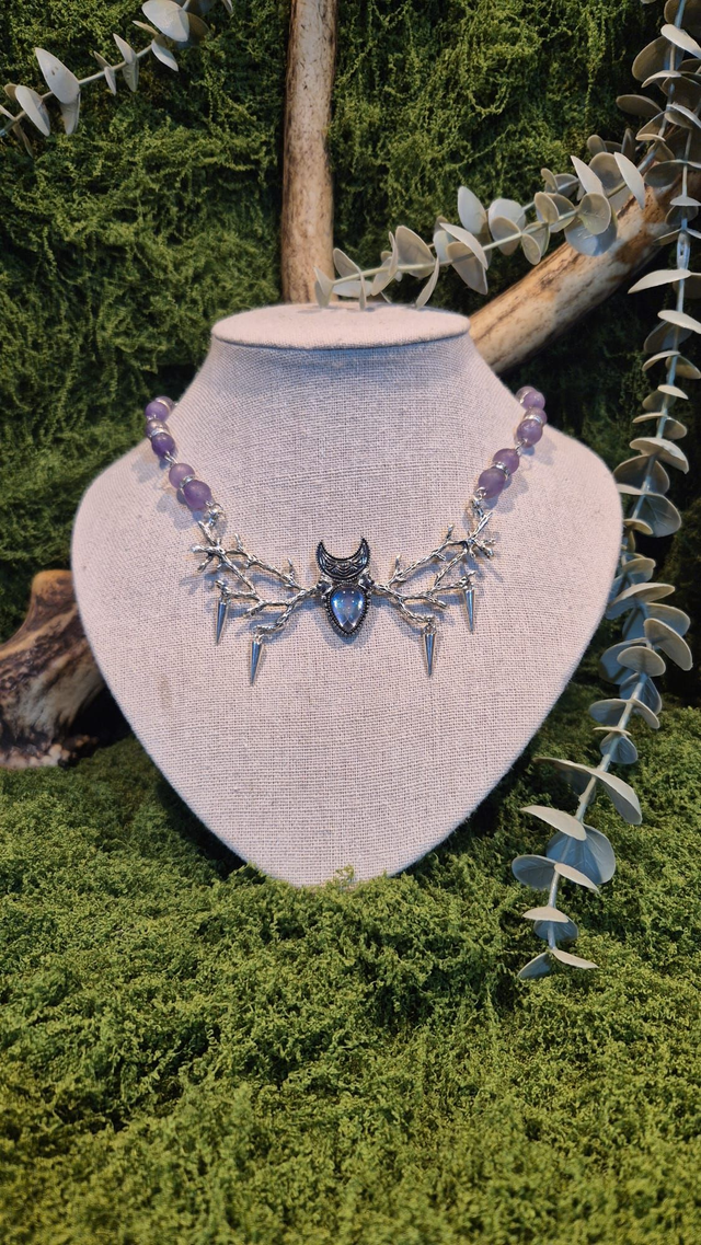 un collier unique issu de la collection Forêt Enchantée, inspirée par la légende du cerf blanc et l’esprit mystique des bois sacrés.