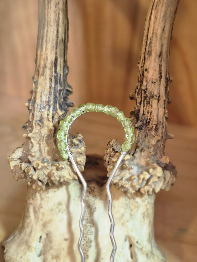 Apporte mystère et intensité à tes coiffures avec le Pic Sacré Perigot, une création faite main pensée pour illuminer tes chignons et tes coiffures sophistiquées.
