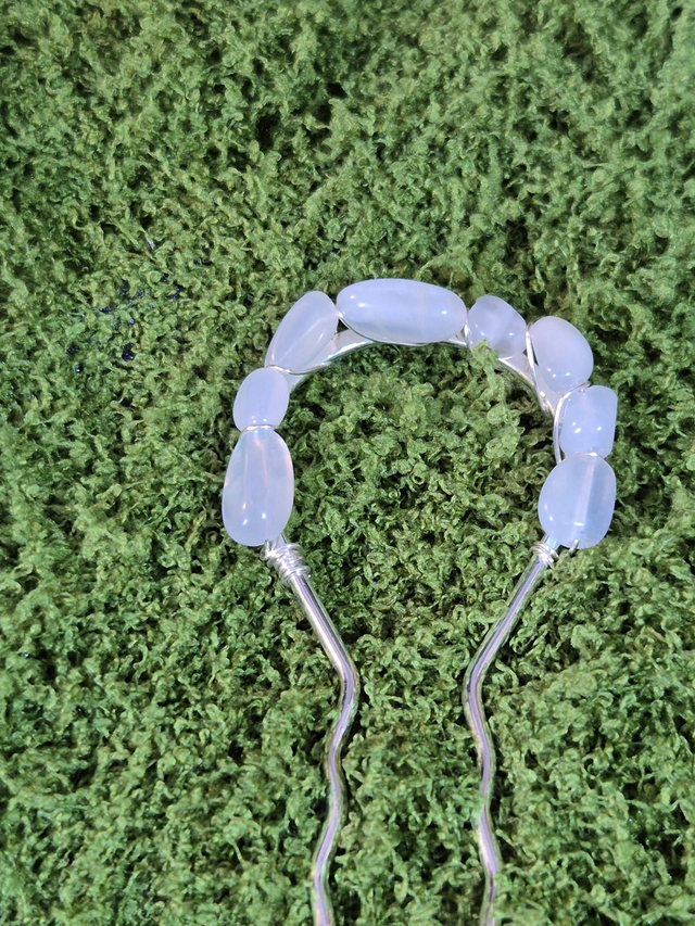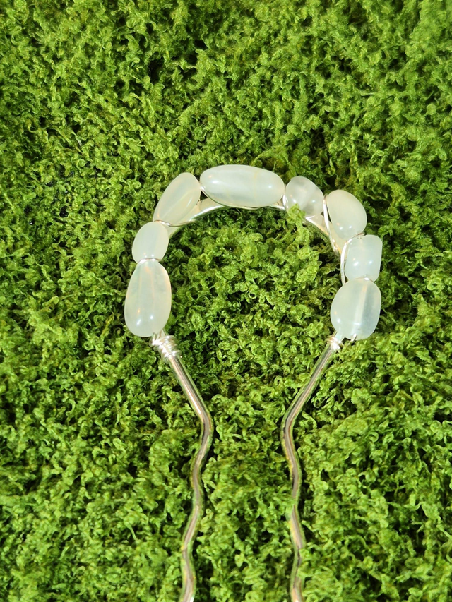 Apporte éclat et mysticisme à tes coiffures avec le Pic Sacré Péristérite, une création faite main pensée pour sublimer tes chignons et tes coiffures sophistiquées.