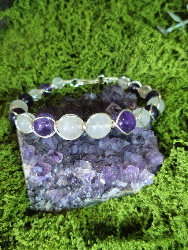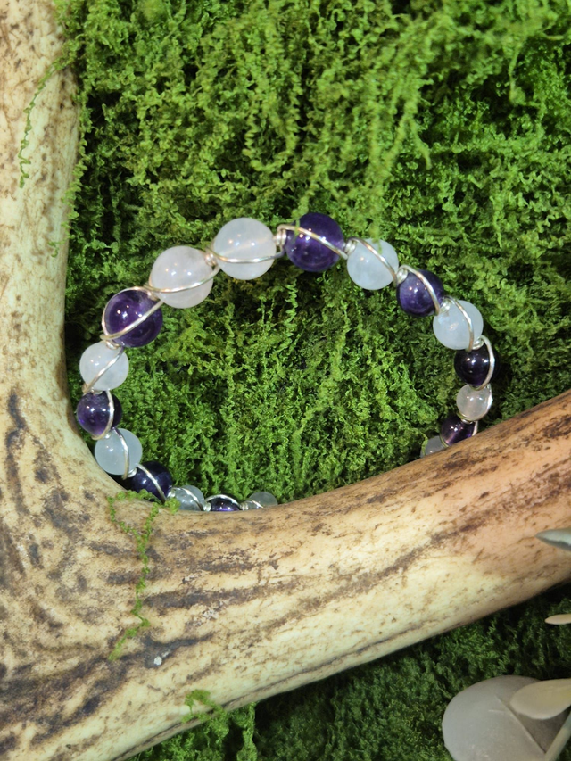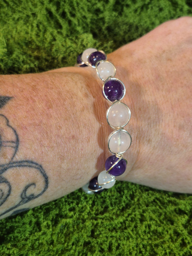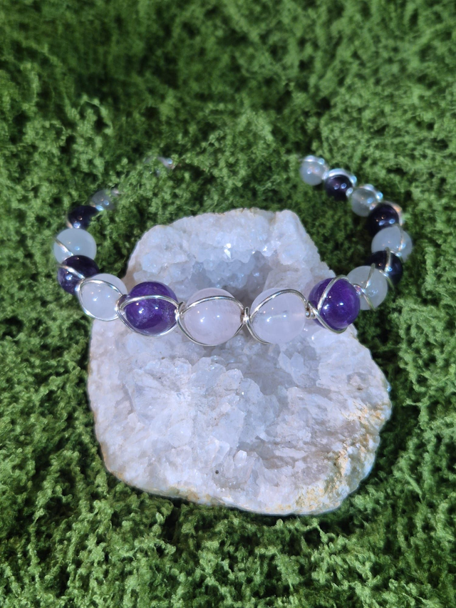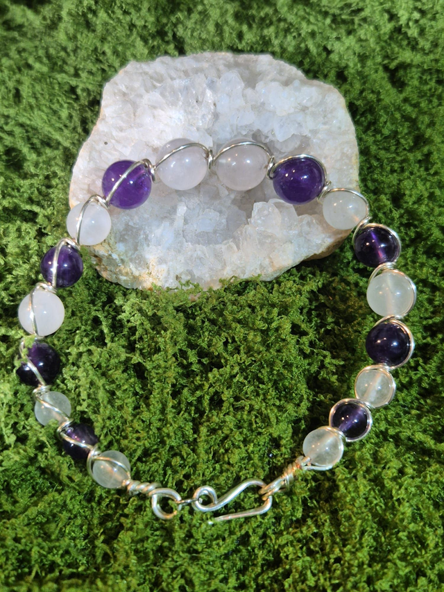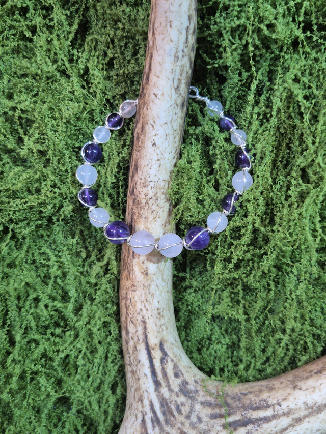 Éveil du Cœur – Améthyste & Quartz Rose – Collection Tissage Sacré