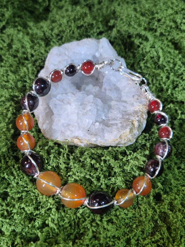 Le grenat, profond et intense, renforce l’ancrage, la passion et la détermination, tout en favorisant la régénération énergétique.